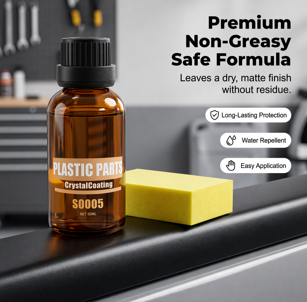 PREMIUM NON-GREASY SAFE FORMULAĀ – Formulated to be completely safe for your vehicle, our restorer absorbs quickly. It leaves behind a clean, dry-to-the-touch finish that never feels greasy or attracts dust.
