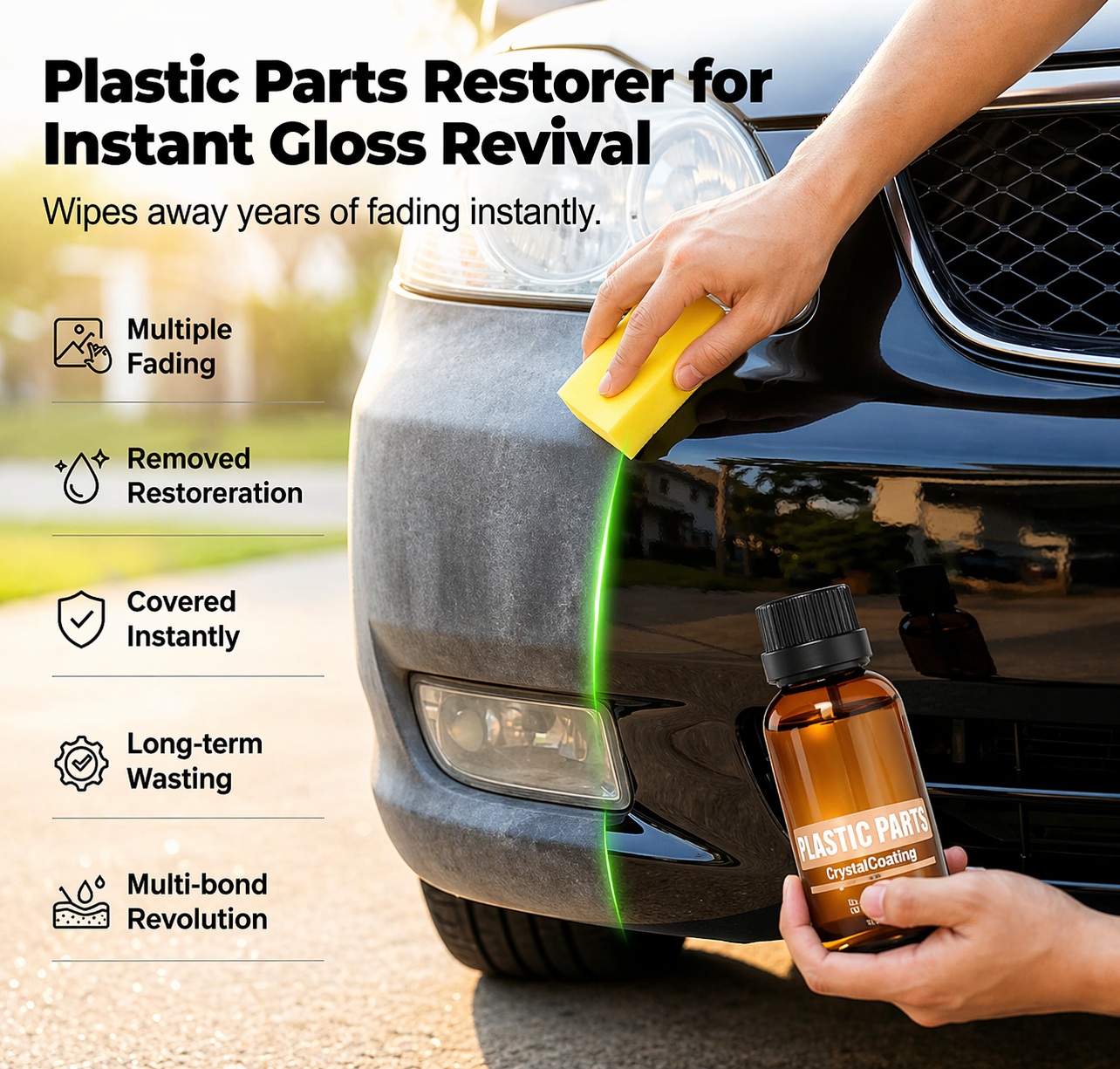 ADVANCED HYDROPHOBIC CRYSTAL COATINGĀ – Engineered with cutting-edge crystal coating technology, this restorer creates a durable, hydrophobic shield. It actively repels rainwater, road grime, and prevents future UV sun damage.